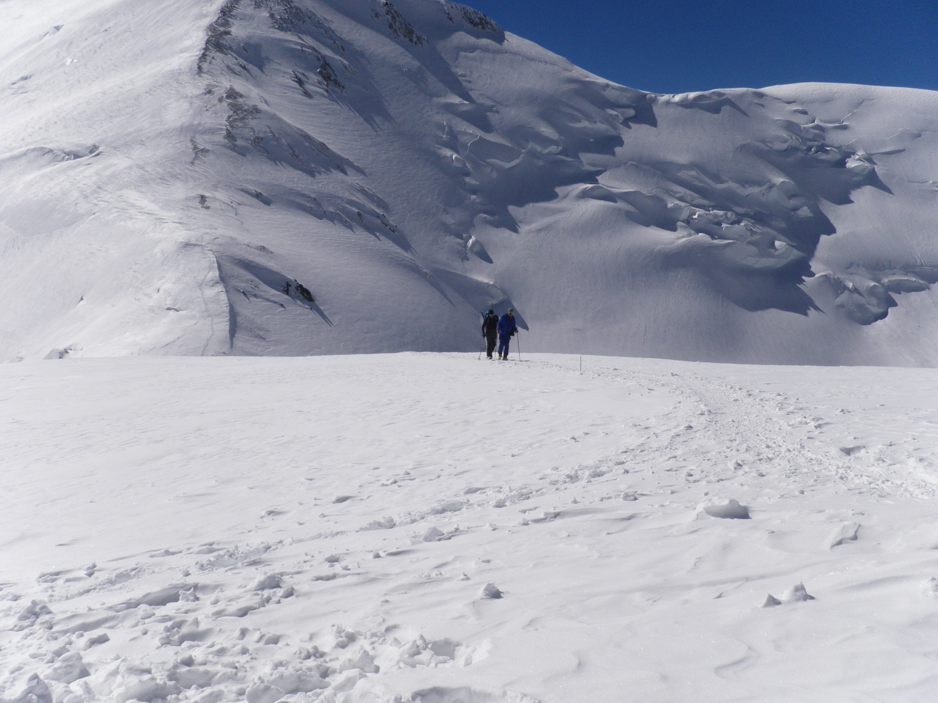 Vreme se je na krilih vetra preko dneva večkrat spreminjalo. A gora nam je le poklonila svoj sijaj, pa čeprav le za trenutek. Moj šotor je bil postavljen tako, da sem se vrha gore lahko dotikal z roko kar iz spalne vreče, lepota mi je bila na dlani, le tri tisoč višinskih metrov je bilo razlike. Razdalje, ki jih sprejemamo za tako tako, so v gorah tudi časovno strahovite. Tudi v T1 smo preležali dva dni, preden smo se odpravili višje. Ponoči je vedno padlo nekaj novega snega, pokrilo luknje in smer ni bila več enostavna. Odkrito povedano, po celcu in brez dobre orientacije ni dišalo nikomur zakorakati proti T2. Tudi ruski alpinisti so se bolj ali manj spogledovali. Vse aktivnosti, katere smo počeli v taborih, smo opravljali zgodaj zjutraj ali vsaj dopoldan. Preko dneva je sonce segrelo kotel in sneg preko razpok se je tanjšal. Preživeta lekcija z žarki pa mi je tudi pustila velik pečat tako na obrazu kot tudi v spoštovanju gore. Proti T2 smo zakorakali nekaj čez polnoč. Trda tema, škripanje derez, kovinski zvoki opreme in rezanje po nosu in po prstih. Mraz je res potrdil vse tisto, kar smo prej lahko prebrali o tej gori. Iz mojih izkušenj sem si čim prej zaželel dneva, kajti v gorah lahko dan spremeni situacijo. Teoretično razdalja med taboroma T1 in T2 ni bila gromozanska, je pa strmina in »tisoč višincev kar položila precej svinca v noge«. Poleg dihanja so sitnost povzročale razpoke prekrite s snegom. Problem je bila zbranost in potrpežljivost. Klože, pršič, presenečenje. Če smo bili prej kadarkoli brezglavi kolibriji, smo sedaj bolj spominjali na puščavske kamele. Verjetno je bil ravno to razlog, da se je Jurij odločil za zanesljivega vodnika Arturja. Artur je bil muslimanski Rus, mlad in nadobuden alpinist, ki je bil nagrajen z ruskim znakom »Snežni leopard«. S svojo samozavestjo nam je vlival mirnost. Če je kdo v naši navezi spominjal na planinskega pajka, potem je bil to prav gotovo Artur. Po sedmih urah, tudi že sončenje je bilo vmes, smo zagledali T2. Tabor je bil vsiljeno postavljen v strmino in vsak, ki si je hotel postaviti šotor, je moral najprej ustvariti trdno, vodoravno podlago. Po hitri oceni je bilo v taboru že postavljenih okoli dvajset šotorov. Takoj se je videlo, da bo bivanje v T2 veliko »bolj rezko«, pa tudi šotor, ki smo ga na hitro postavili, je bil manjši, manj udoben. No, višina 5400m, nam je primaknila še svoje zakonitosti! Jurij je prižgal gorilnik in s stopljenim snegom smo si ustvarili nekaj za želodec. V takih trenutkih se res splača potruditi in spraviti nekaj v telo. Ni enostavno, a vsaka pogoltnjena žlička je vredna naložba za naslednji dan. Preostanek dneva smo se skrivali v šotoru enkrat pred žarki, drugič pred vetrom in snegom. Ja, ta gora je res prepišna in mrzla, kot opozarjajo že razni opisi. Andrej se je proti večeru kobacal po šotoru ves prestrašen. Odpravil se je nenavezan na »praznjenje črevesja« na rob tabora in zmanjkalo mu je tal pod nogami. K sreči je zgrabil ledeni rob in obvisel zunaj luknje. Nikomur ni bilo do šale, da bi ga vprašal, kako je končal s toaleto. Čeprav smo take dogodke že prej srečevali pri drugih navezah, se nam je ta naša izkušnja zares močno zarezala in nas spremljala še celo odpravo.